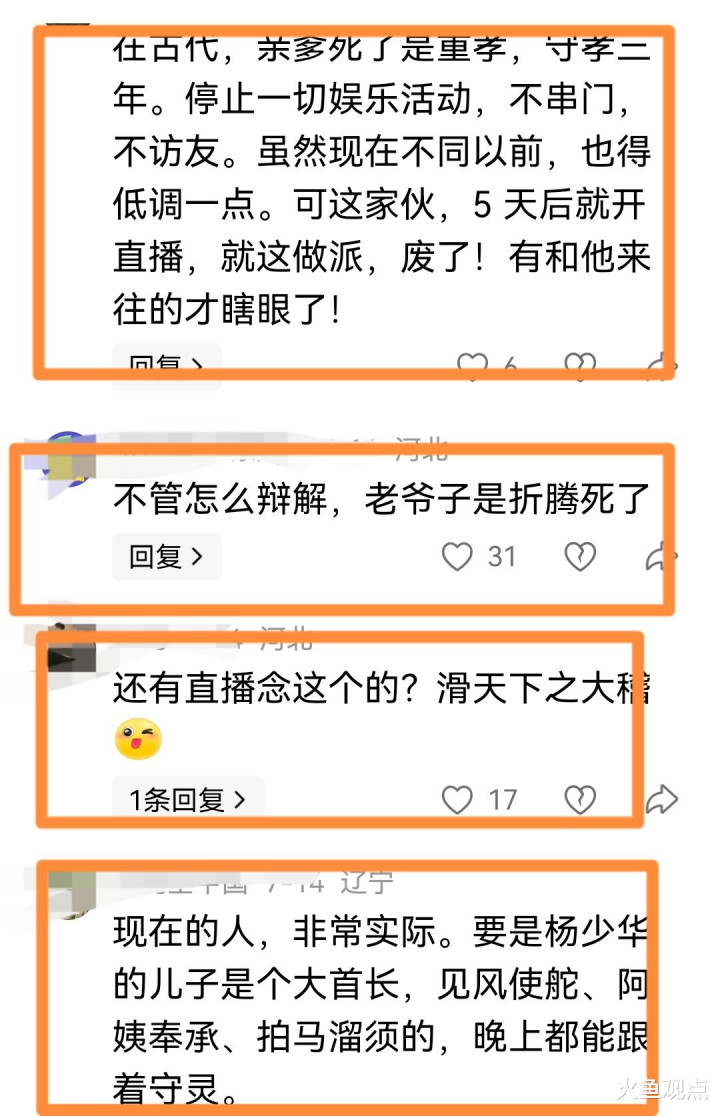 虽然现在不同以往,但也不该如此高调,刚埋下父亲就直播,简直太滑稽。