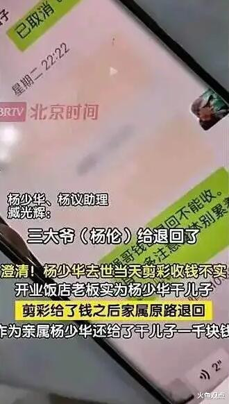 毕竟在杨少华参加饭店开业典礼去世的当天,他的助理就说,杨伦把饭店给的钱已经退回去了,还反给对方随了礼。