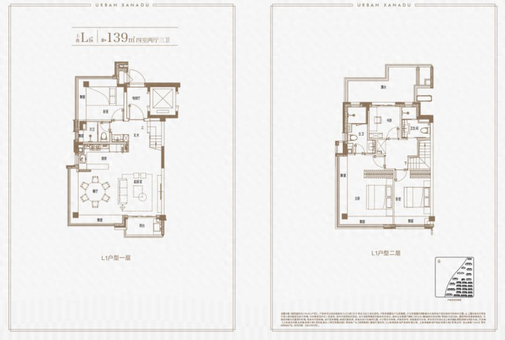 约142㎡建面的下叠户型