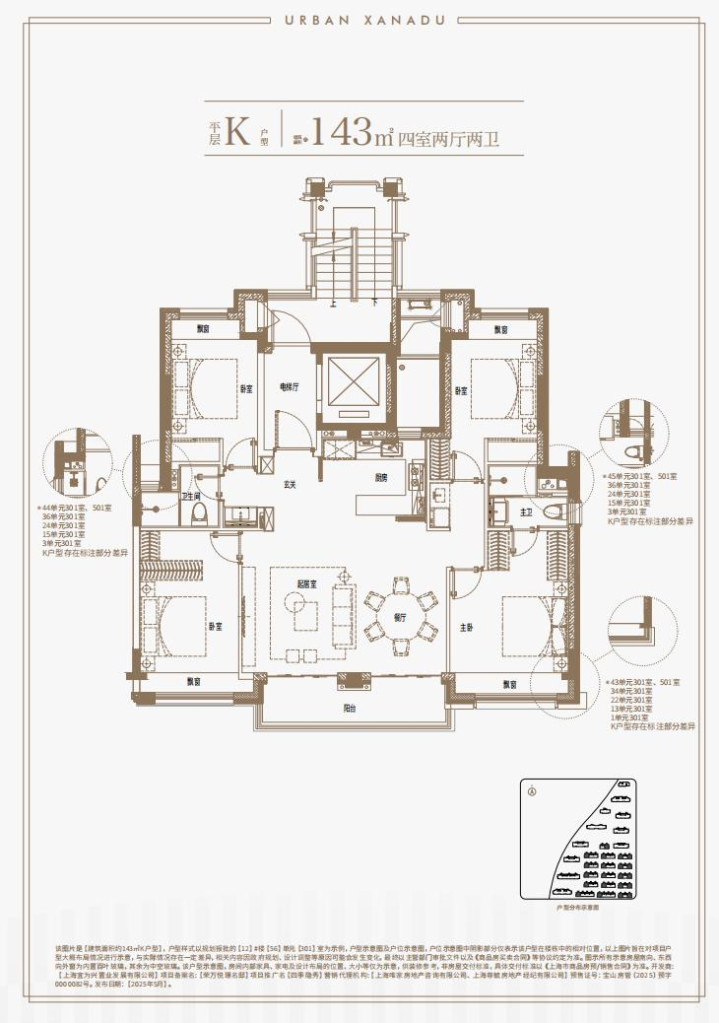 建面约143㎡中叠平层户型